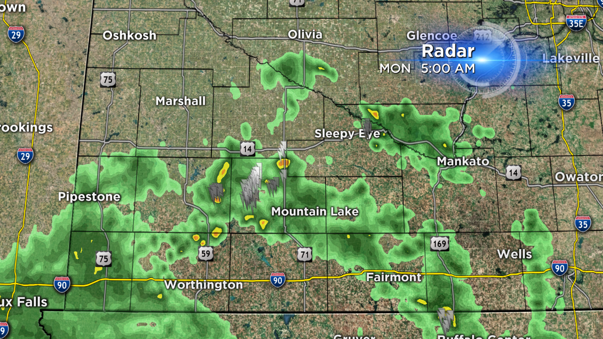 A few thunderstorms popping up in SW Minnesota this morning near Mountain Lake & Sleepy Eye